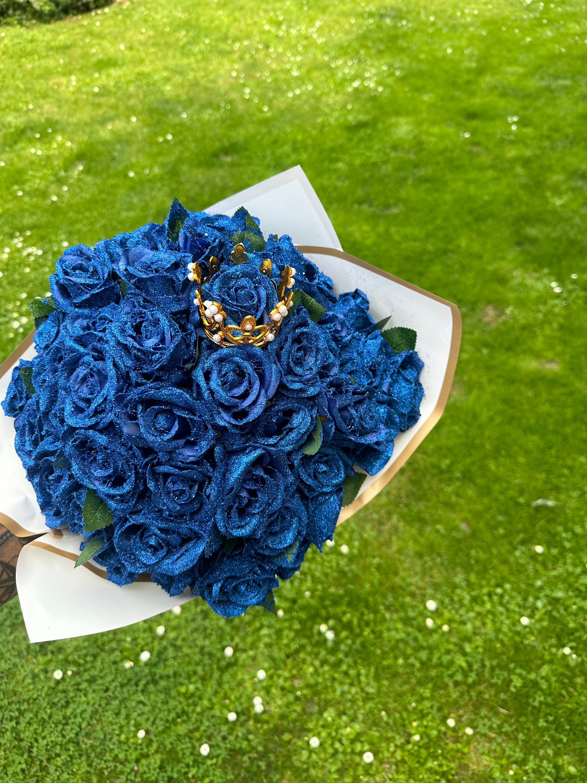 Ez a csokor egy WOW -élmény, amit minden nő imádni fog. A csillám rózsák nem hervadnak el, nem unalmasak, és garantáltan lenyűgözik. Olyan, mint az érzéseid – örök és ragyogó.