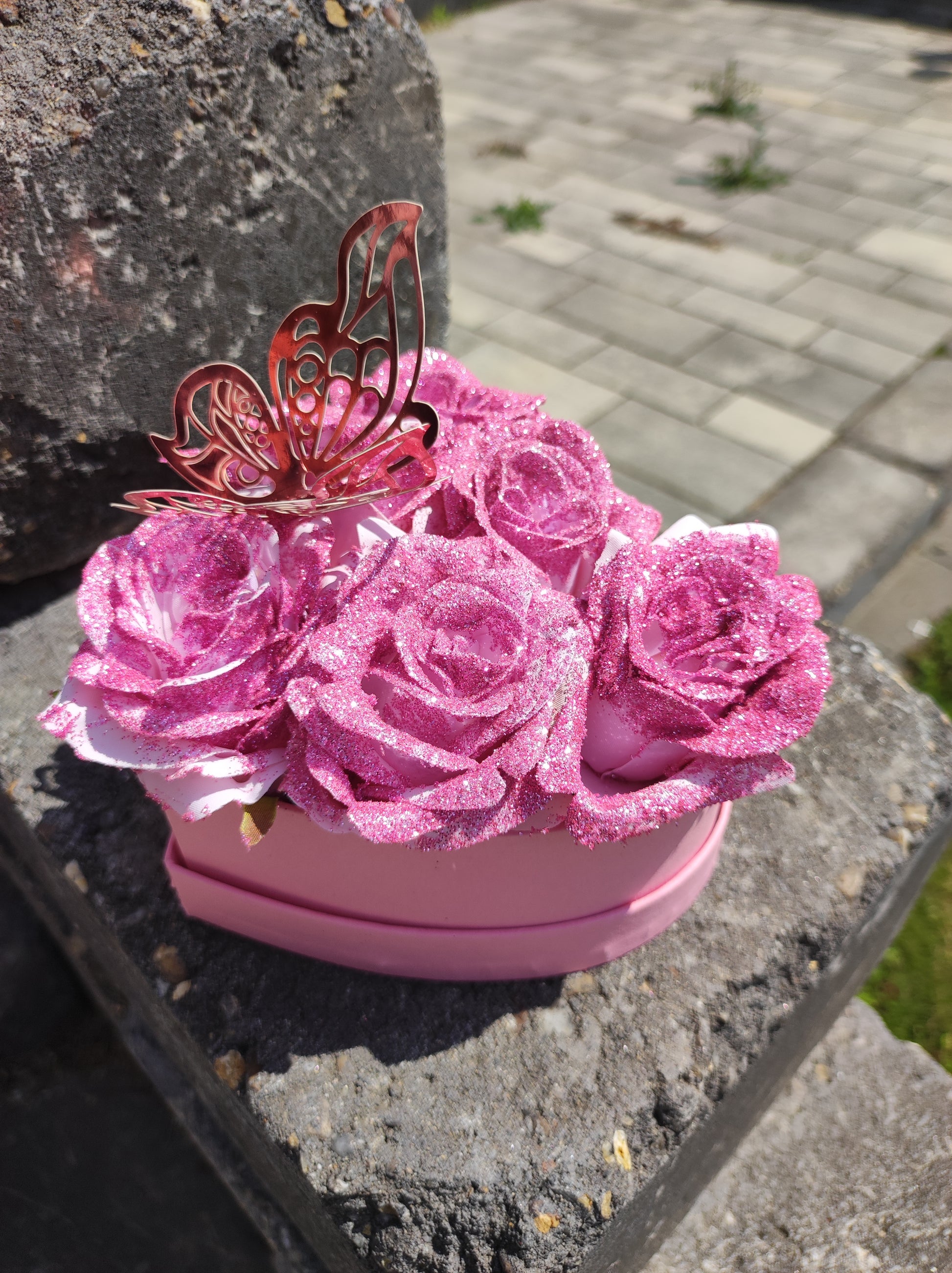 Elegáns Műrózsa Luxus Díszdobozban Rózsaszín
