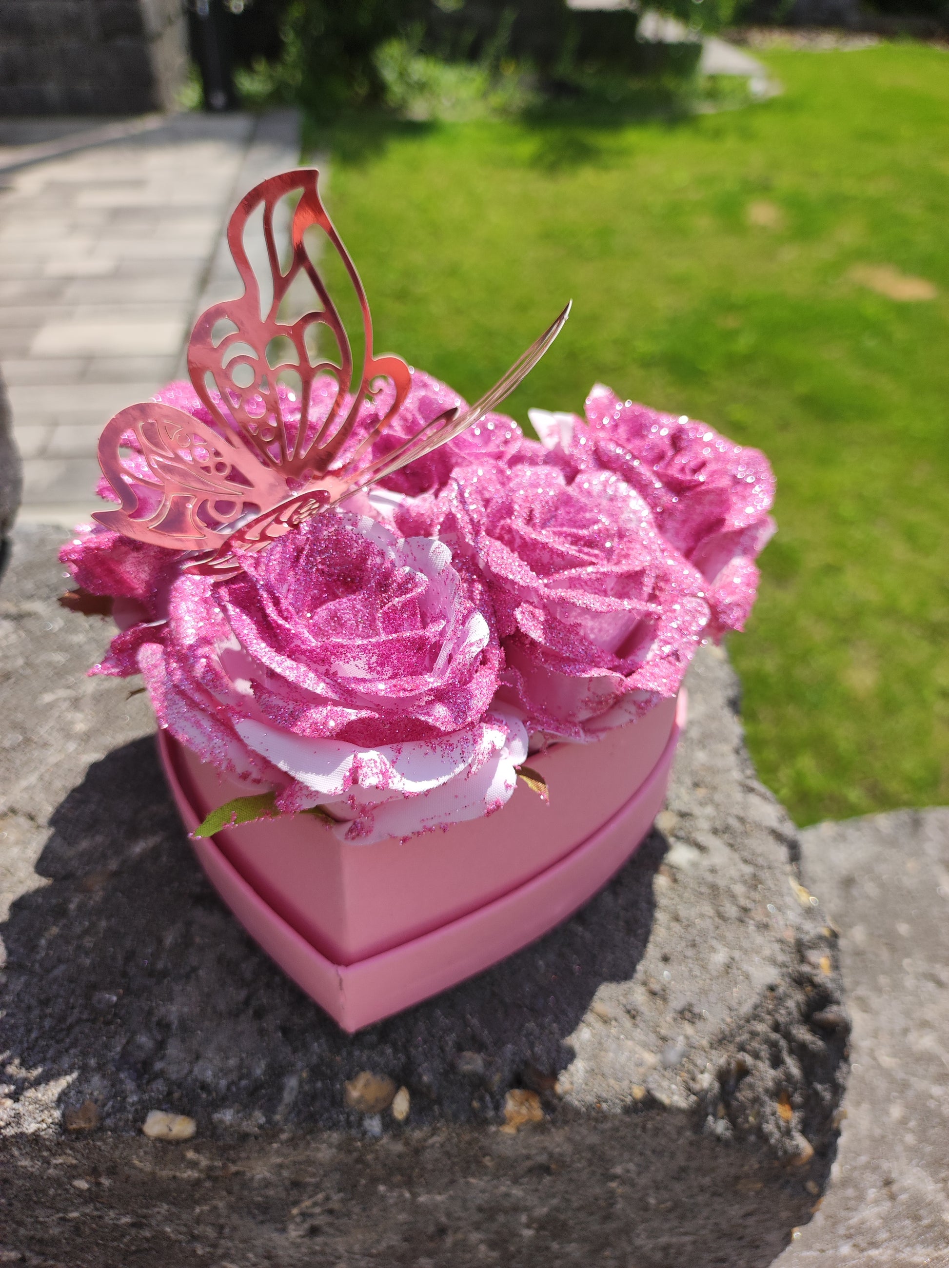 • Doboz: Elegáns kialakítású szív alakú díszdoboz